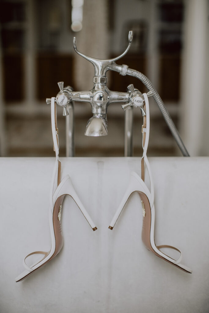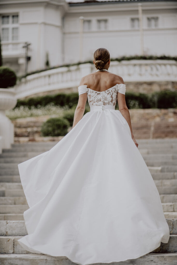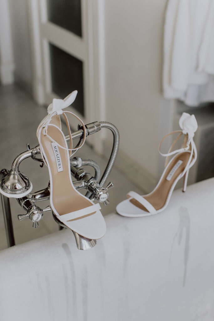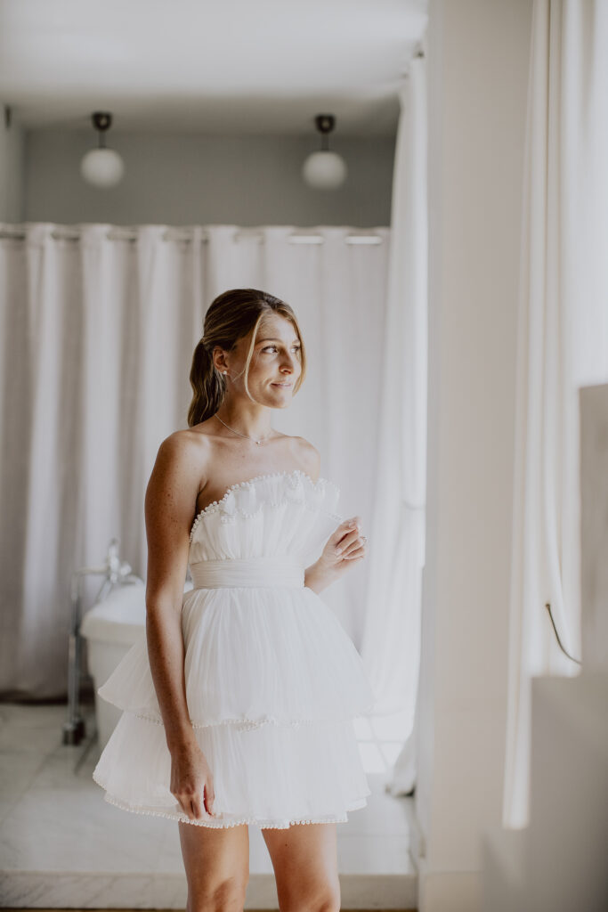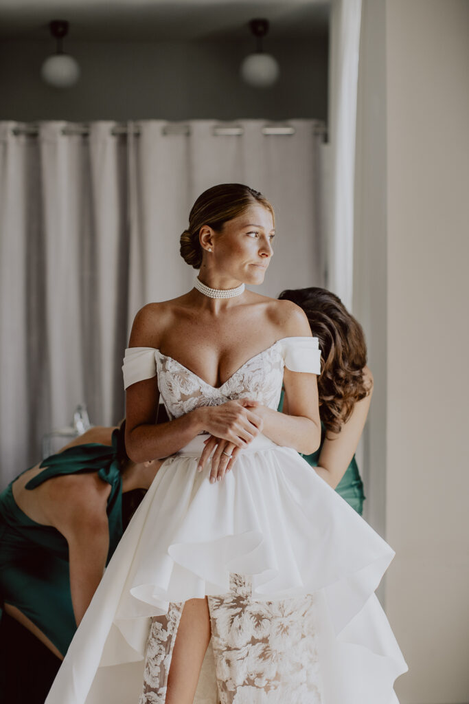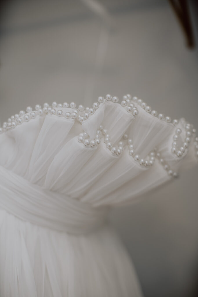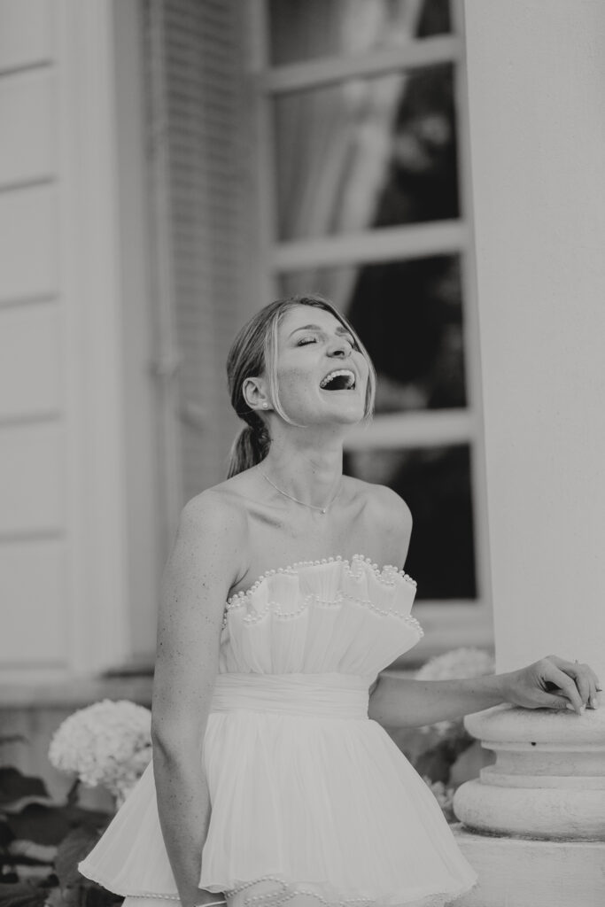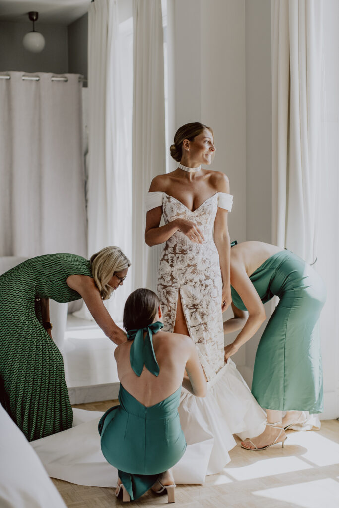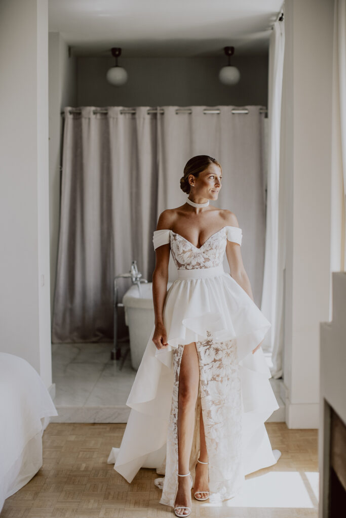 Le moment fort de cette épopée fut sans nul doute la cérémonie religieuse. C’est à l’église de Giens, perchée fièrement sur sa presqu’île, que nos deux mariés se sont dit « Oui ». Si pour la cérémonie civile à Bormes les Mimosas, Laurène avait choisi une magnifique robe courte Rime Arodaky mais pour la cérémonie religieuse, son choix s’est porté sur une robe Nicolas Fafiotte en deux partie afin d’enlever le jupon supérieur pour la soirée. Elle était sublime!