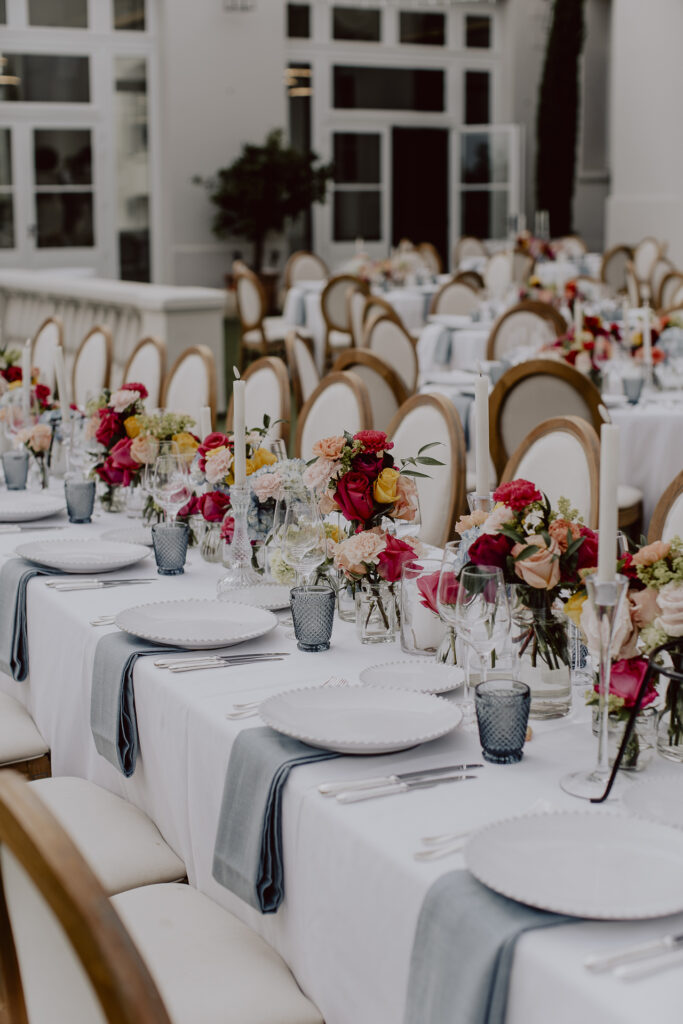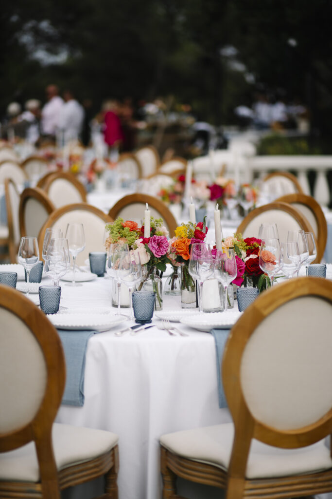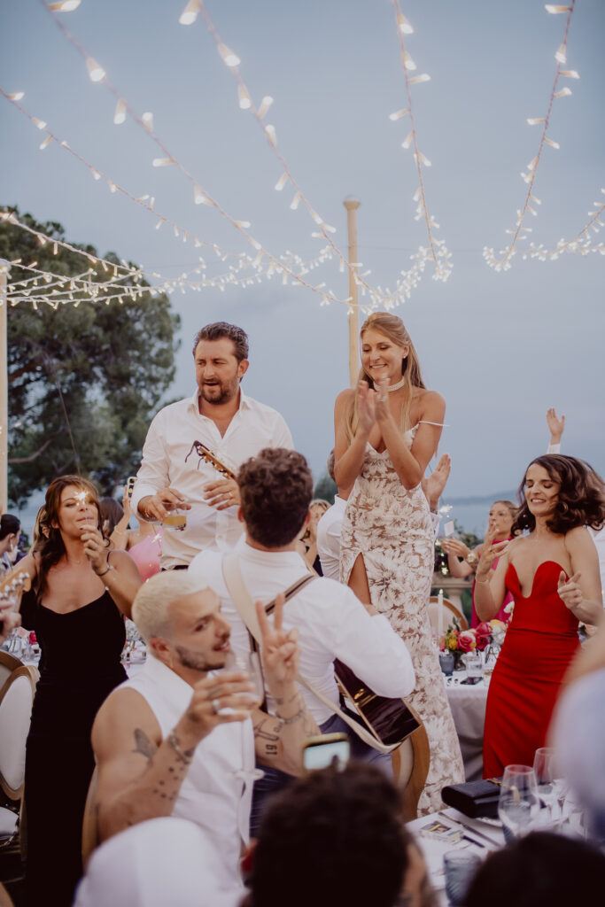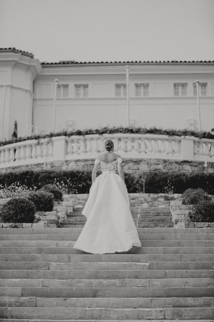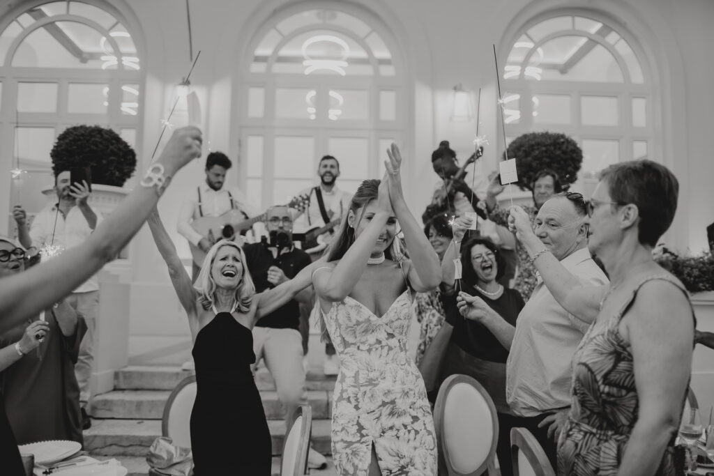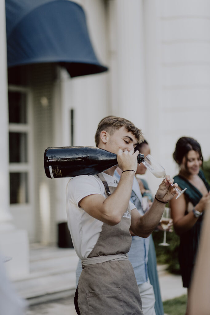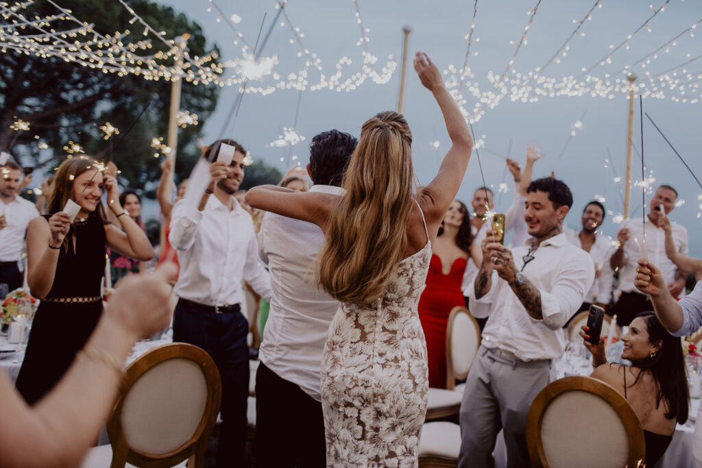 Pour clore cette journée mémorable, la réception s’est tenue au Castel Bay à Hyères. Ce lieu emblématique, mêlant architecture néoclassique et modernité, a offert un cadre spectaculaire pour le dîner de noces.