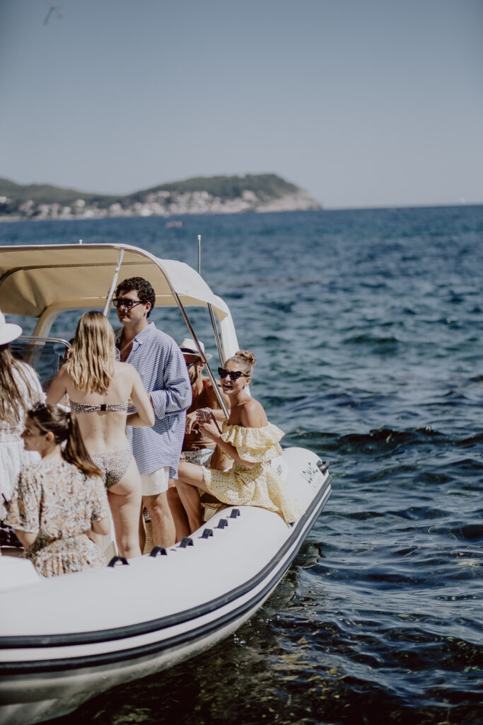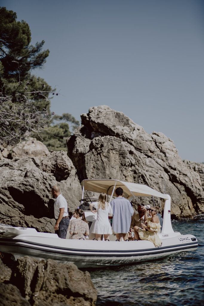 L’émotion était palpable sous la lumière dorée du sud, tandis que le cortège s’élançait avec, pour toile de fond, une vue imprenable sur les îles d’Or. Une étape solennelle et poignante avant de lancer les festivités du soir.