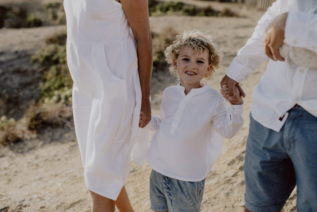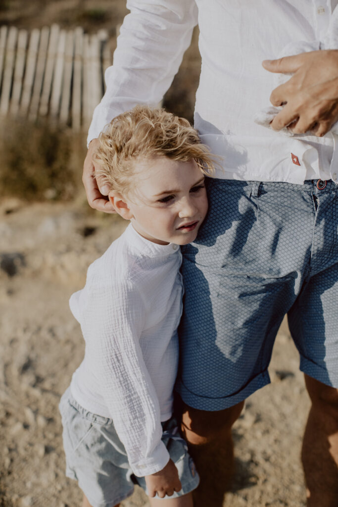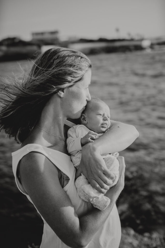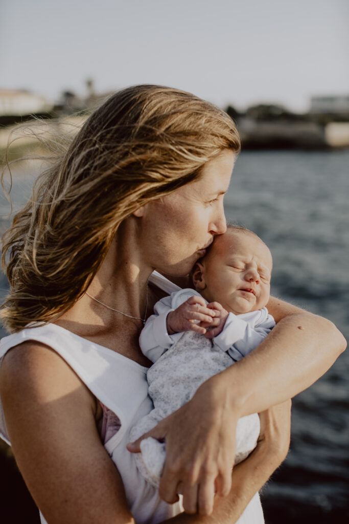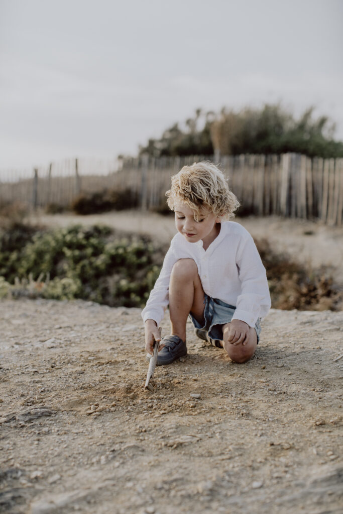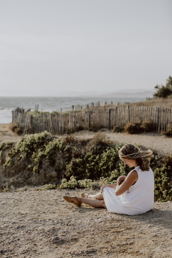 Le vent, souvent perçu comme un inconvénient, peut en réalité se transformer en un allié précieux pour moi. Ce que j’aime comme photographe bébé à la mer? Le mistral qui fait voler les cheveux et les vêtements qui ajoute une dimension poétique et vivante à la scène. Il apporte du mouvement, de la texture, et un sentiment de liberté, transformant une simple pose en un instant plein de grâce et d’émotion. Ces détails fugaces, comme une mèche de cheveux portée par le vent, confèrent aux photos une authenticité et une profondeur supplémentaires, les rendant encore plus mémorables et touchantes.