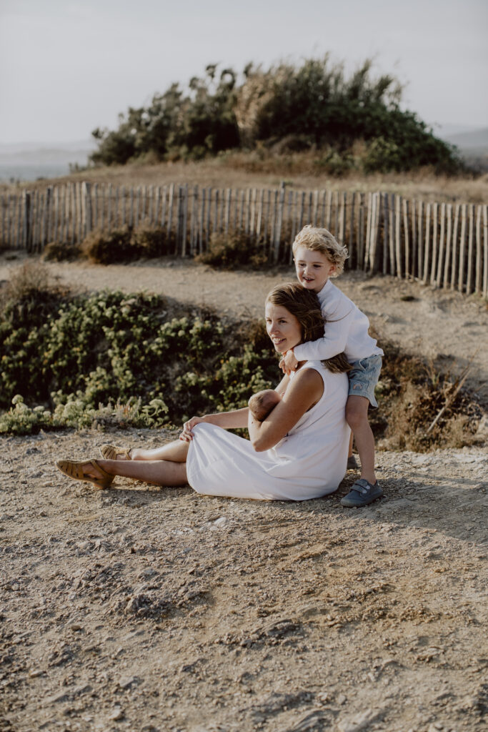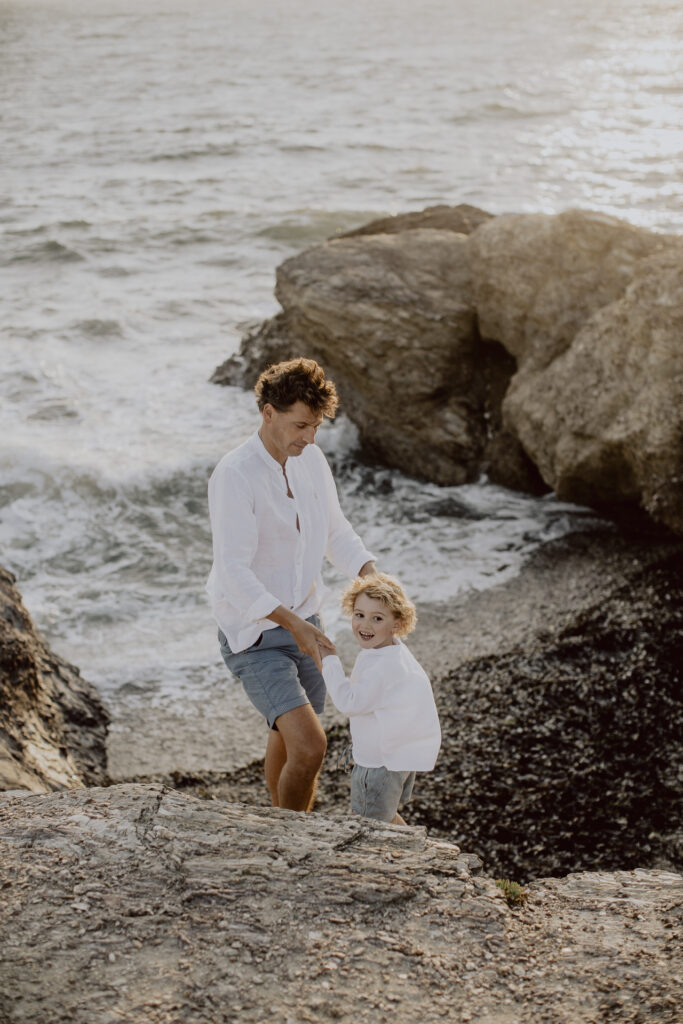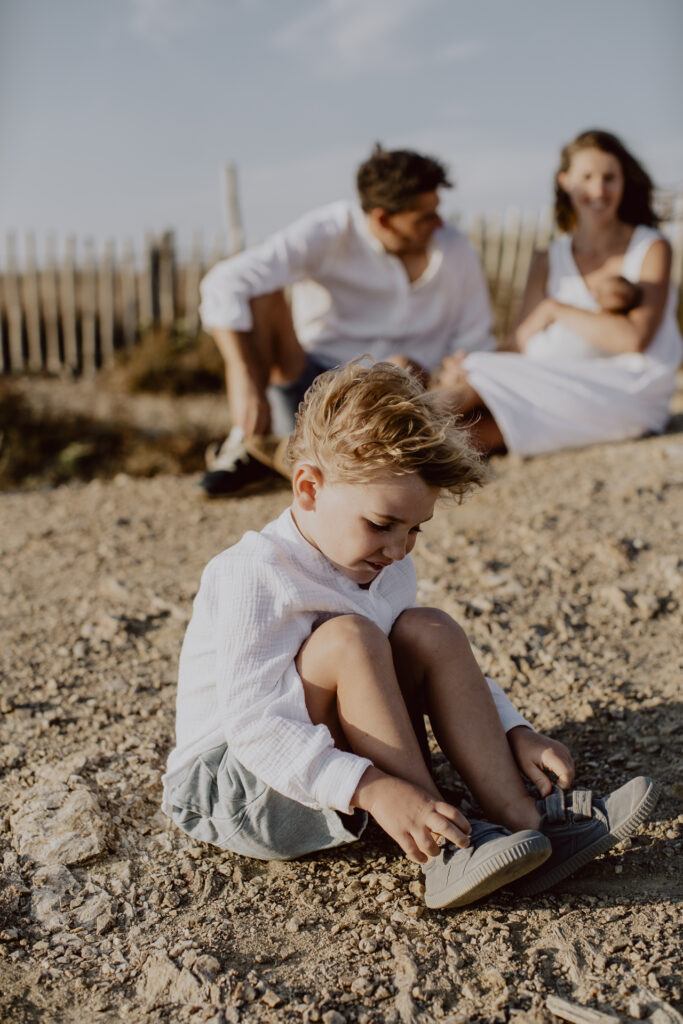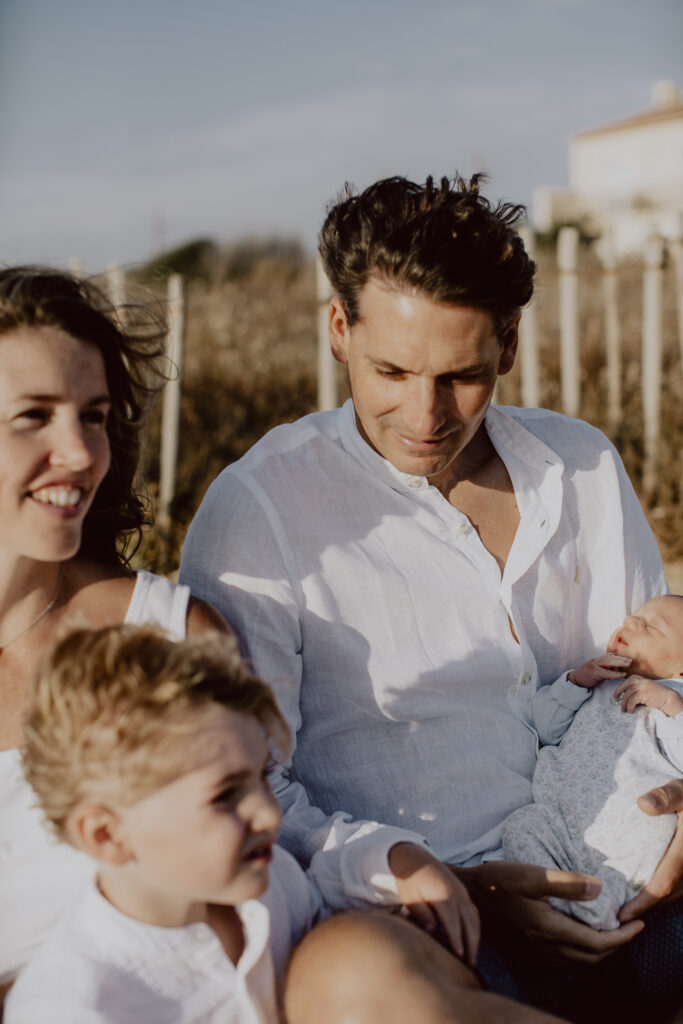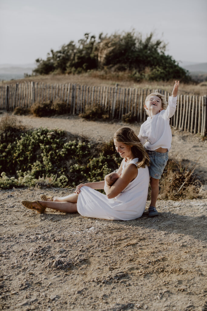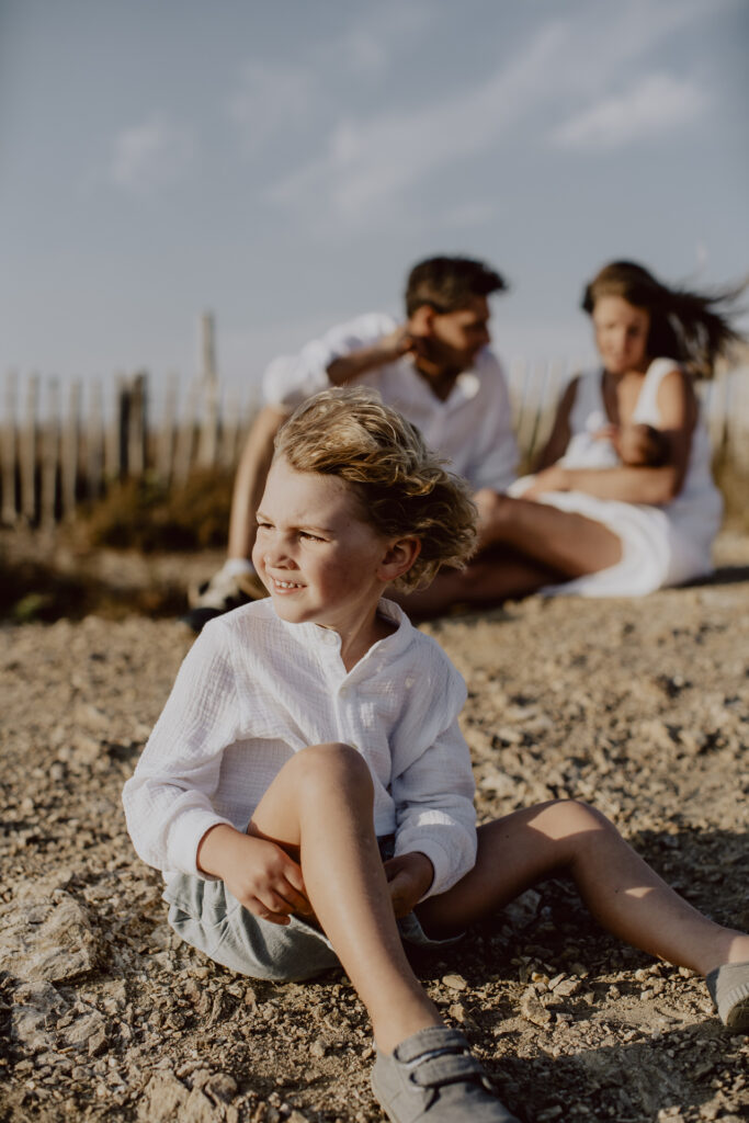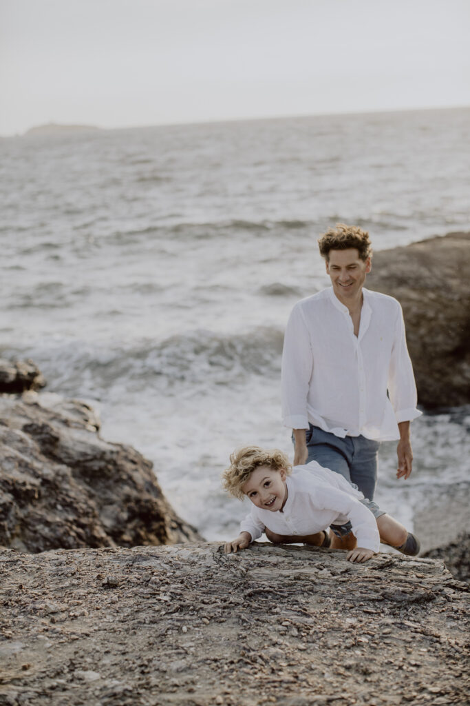 Le vent, souvent perçu comme un inconvénient, peut en réalité se transformer en un allié précieux pour moi. Ce que j’aime comme photographe bébé à la mer? Le mistral qui fait voler les cheveux et les vêtements qui ajoute une dimension poétique et vivante à la scène. Il apporte du mouvement, de la texture, et un sentiment de liberté, transformant une simple pose en un instant plein de grâce et d’émotion. Ces détails fugaces, comme une mèche de cheveux portée par le vent, confèrent aux photos une authenticité et une profondeur supplémentaires, les rendant encore plus mémorables et touchantes.