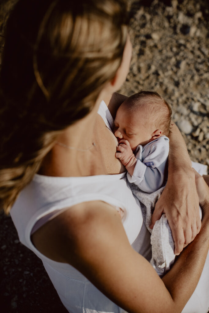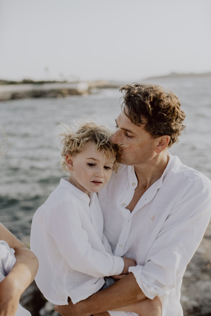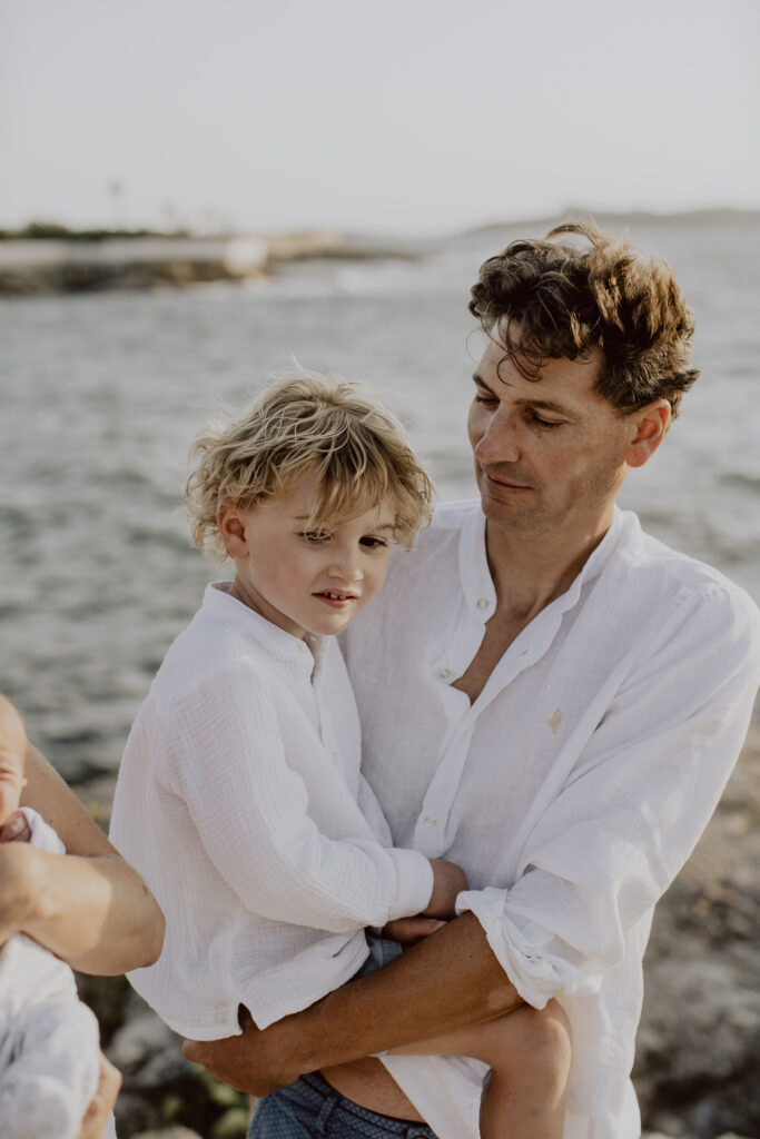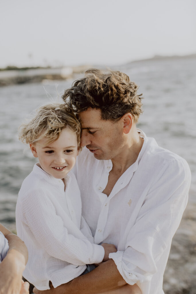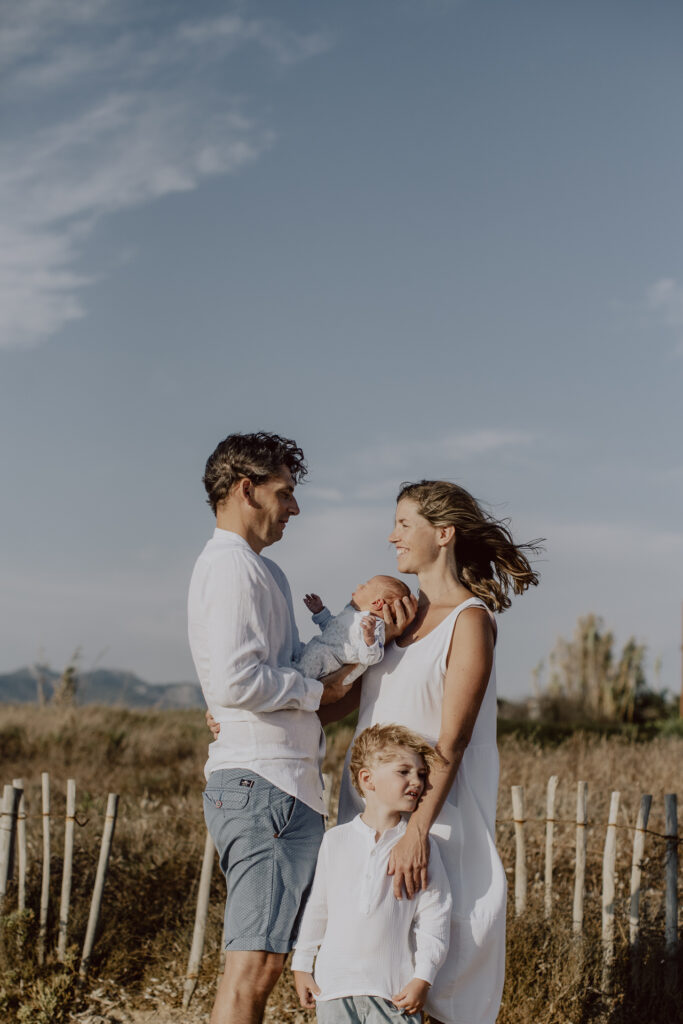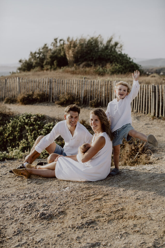 Le vent, souvent perçu comme un inconvénient, peut en réalité se transformer en un allié précieux pour moi. Ce que j’aime comme photographe bébé à la mer? Le mistral qui fait voler les cheveux et les vêtements qui ajoute une dimension poétique et vivante à la scène. Il apporte du mouvement, de la texture, et un sentiment de liberté, transformant une simple pose en un instant plein de grâce et d’émotion. Ces détails fugaces, comme une mèche de cheveux portée par le vent, confèrent aux photos une authenticité et une profondeur supplémentaires, les rendant encore plus mémorables et touchantes.