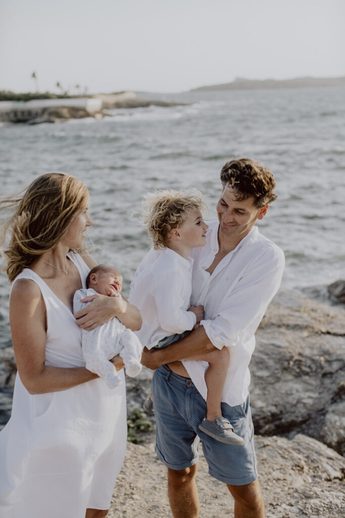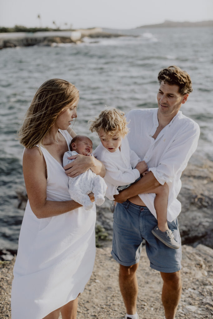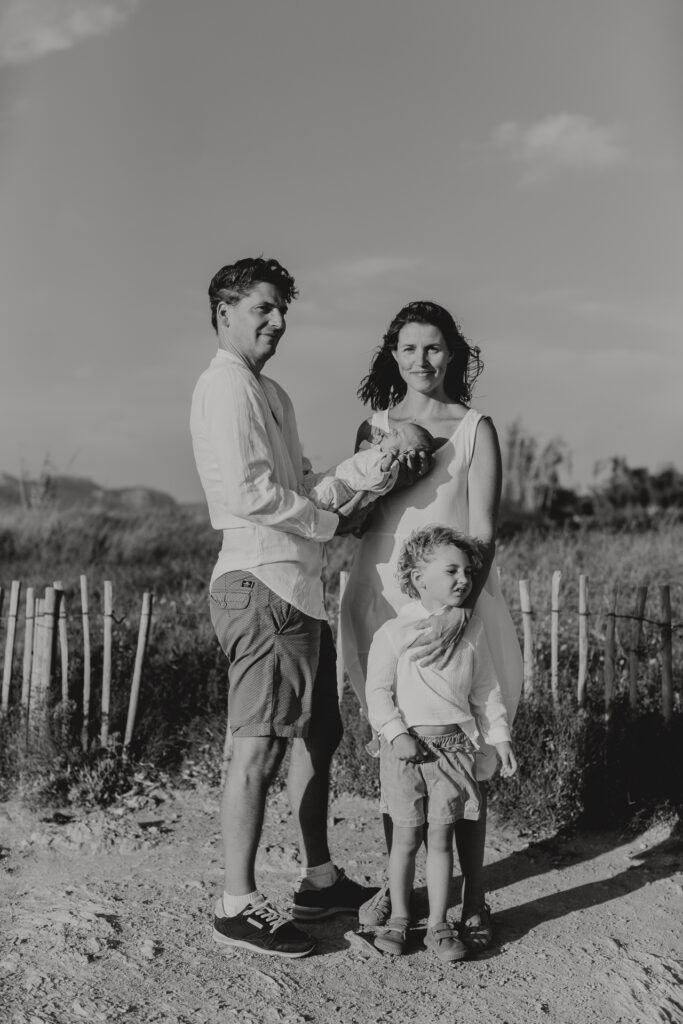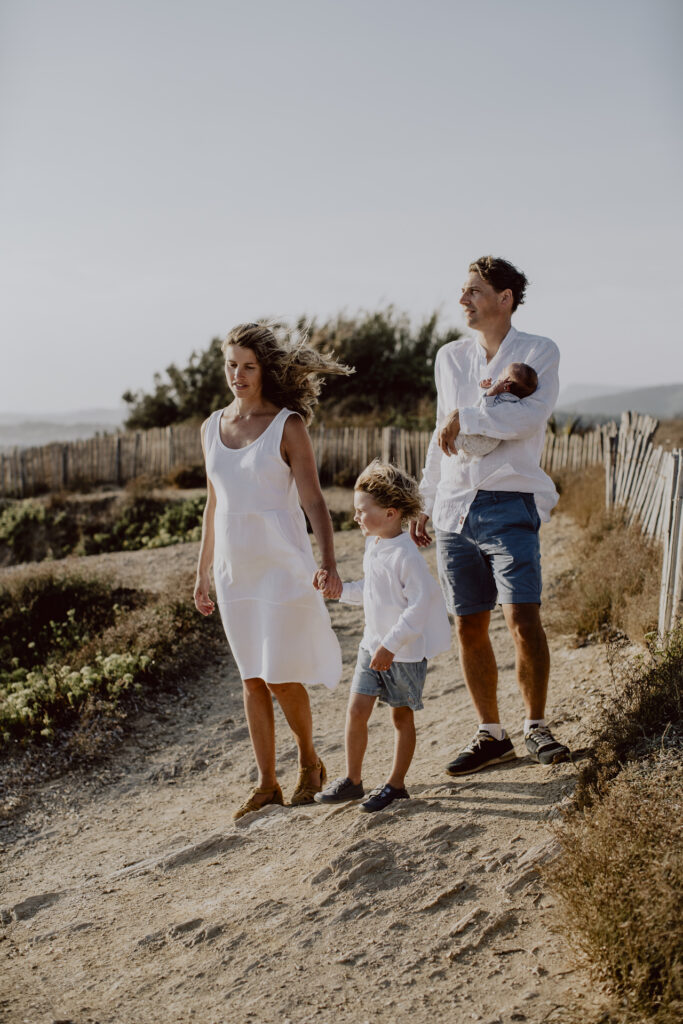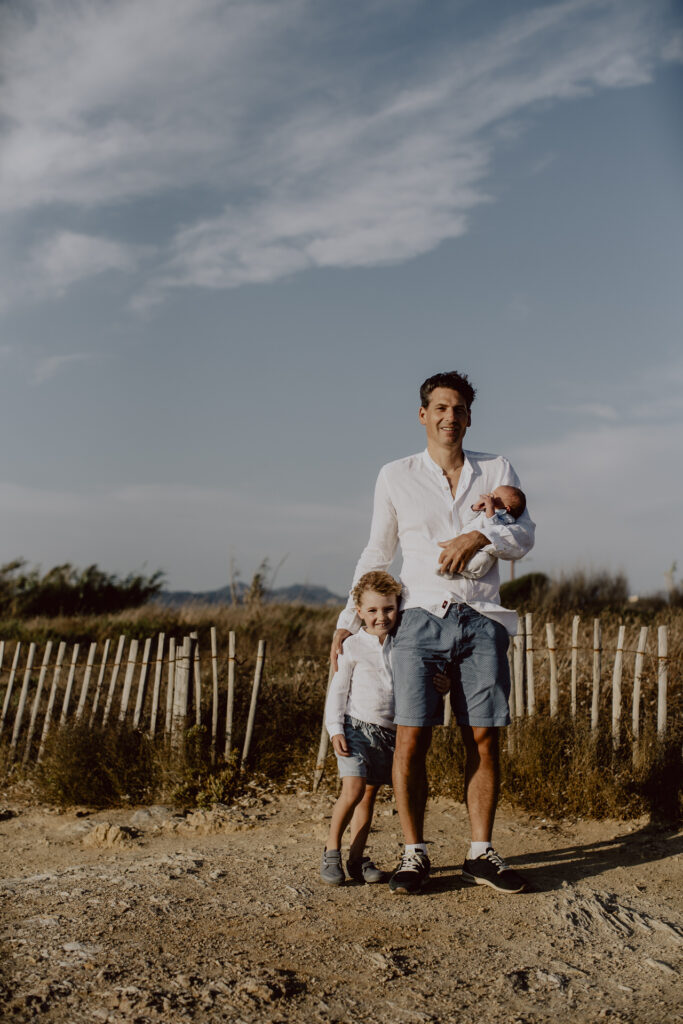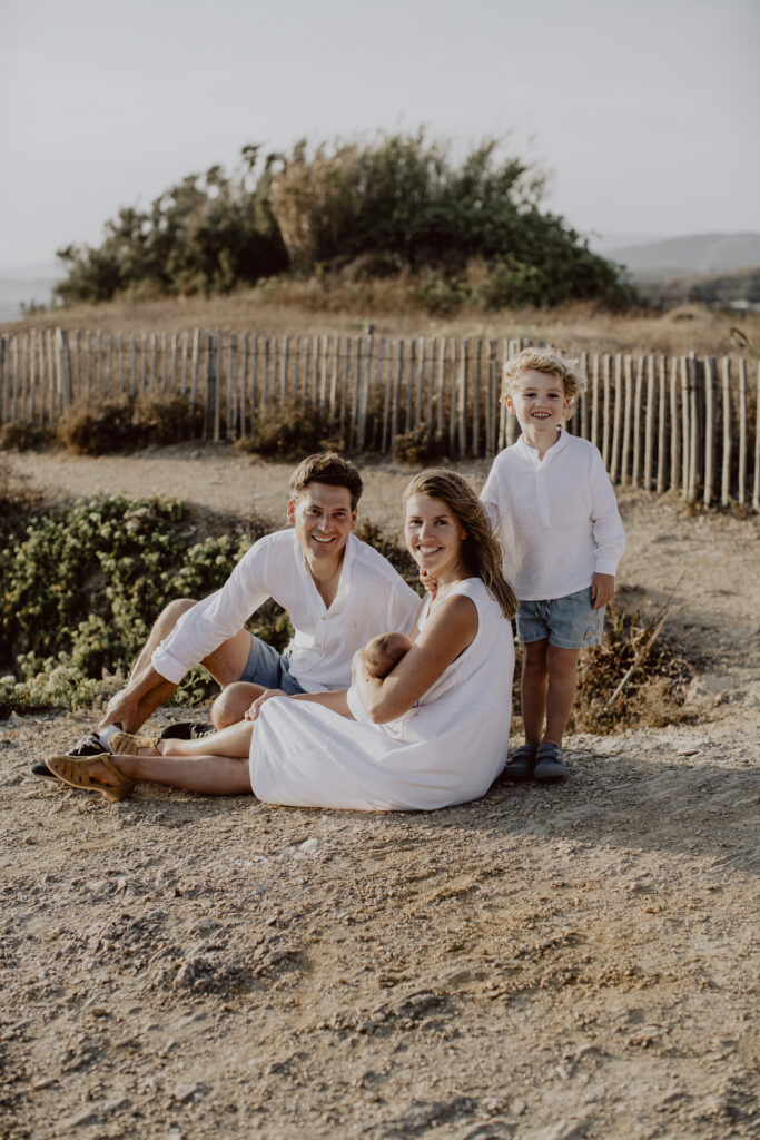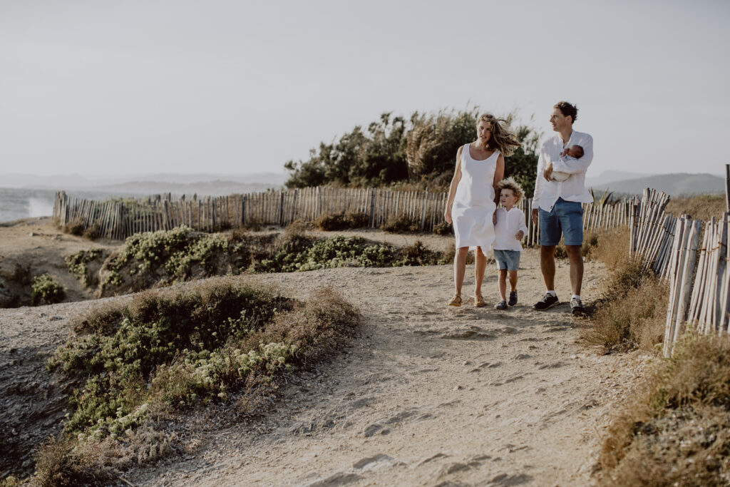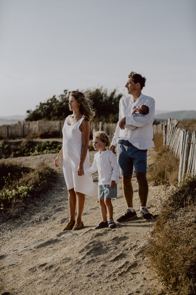 L’été indien prolonge souvent sa magie sur nos côtes, offrant des lumières encore plus spectaculaires qu’en plein cœur de la saison estivale. Photographe bébé à la mer j’ai réalisé cette magnifique séance photo et elle en est la preuve éclatante. Elle met en scène une jeune famille dans un cadre naturel et apaisant, avec un détail particulièrement touchant : la présence d’un nouveau-né, âgé d’à peine une semaine, sereinement bercé dans les bras de son papa.