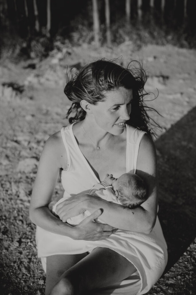 L’un des avantages non négligeables de l’automne, surtout pour les familles avec de jeunes enfants, est l’heure des couchers de soleil. Ils se produisent à un moment plus « raisonnable » en fin d’après-midi, évitant ainsi les contraintes des heures tardives d’été. Cela permet aux tout-petits, comme ce nouveau-né, de participer à la séance sans perturber leur rythme, tout en profitant de cette lumière magique qui baigne le paysage d’une douce lueur.